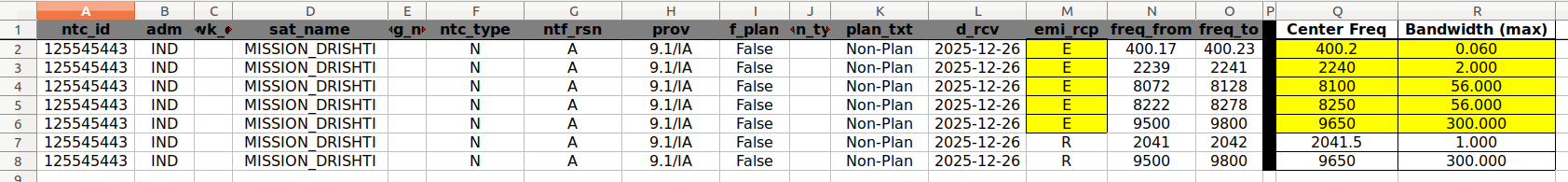 Imaging sat MISSION_DRISHTI is listing 400.2, 2240, & some X-Band downlinks: