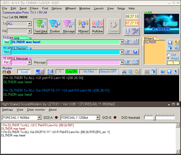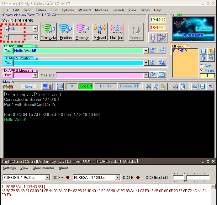 The SoundModem has never been tested yet successfully on Foresail-1p.