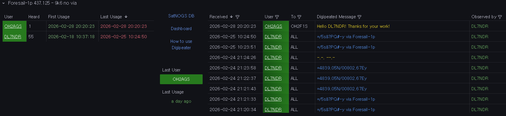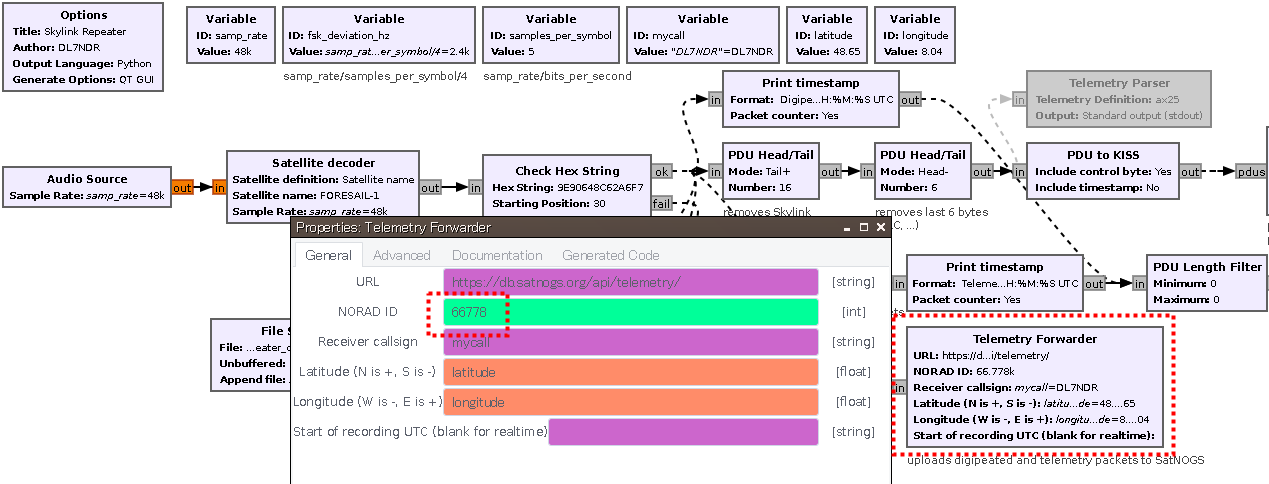 uploads digipeated and telemetry packets to SatNOGS (others are discarded)