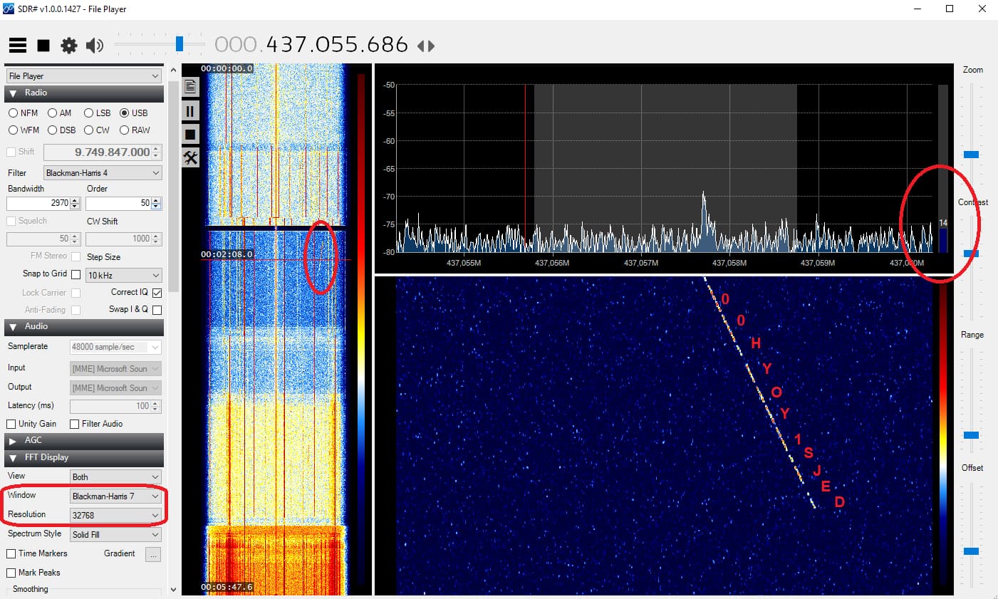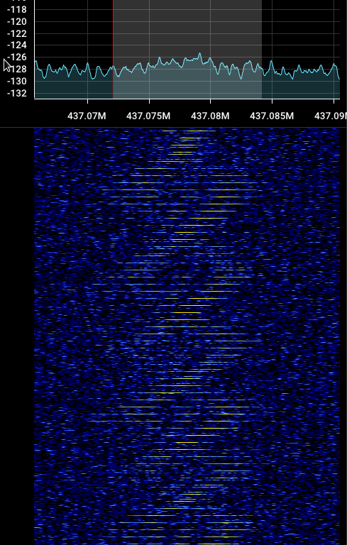 Please note that while my doppler tracking had moved farther to the left at the time of this screen shot, the observed mark (possibly from RSP-03) was right at 437.050 a few minutes earlier.