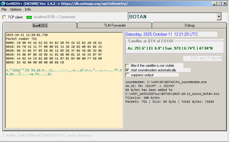 Between the beacons from BOTAN, I’ve listened to e-kagaku-1 but received no signals.
