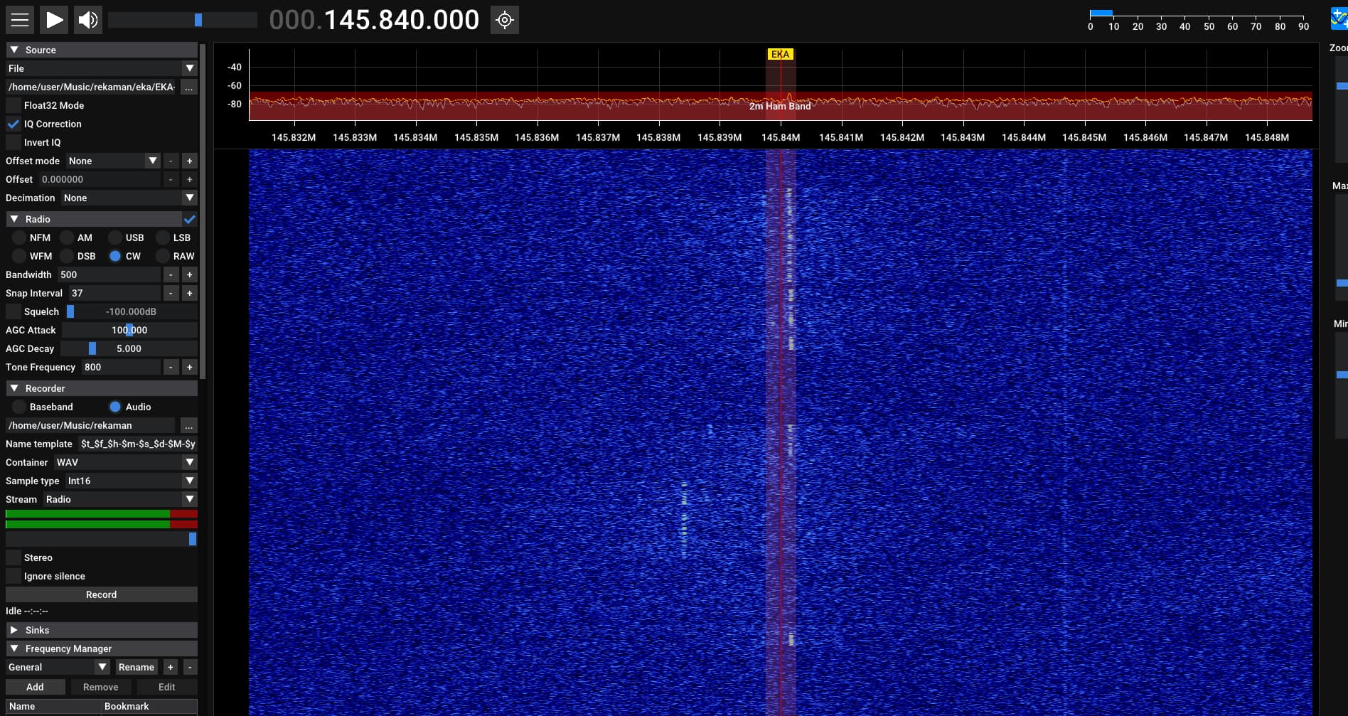 you can download my short version of raw iq file here. i record using sdrpp, with sample rate 250k, sample type Int16. i get the cw signal around 10:25:05 UTC - October 10, 2025.
