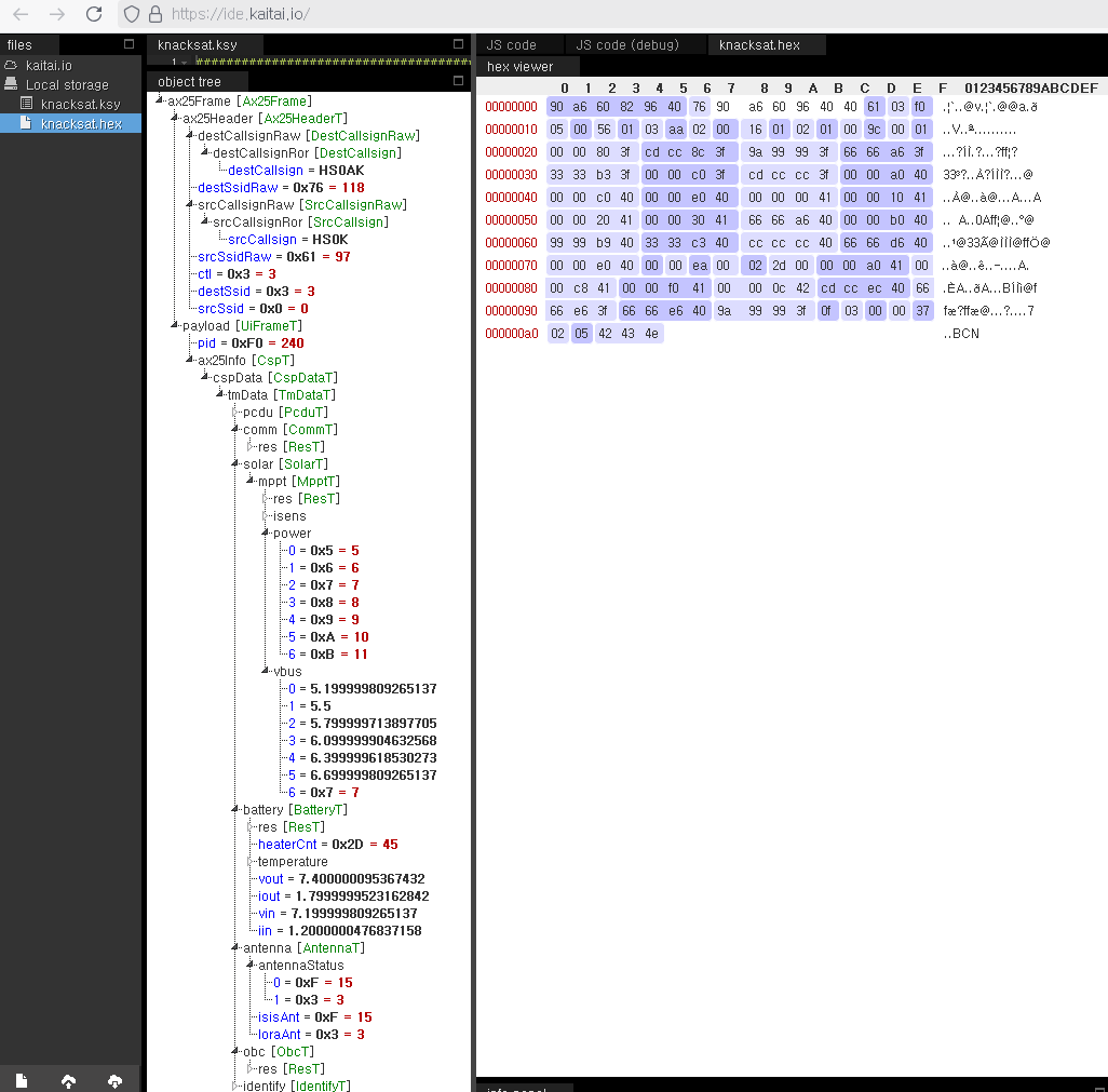 I updated knacksat2.ksy decoder structure following the main.c.txt file
