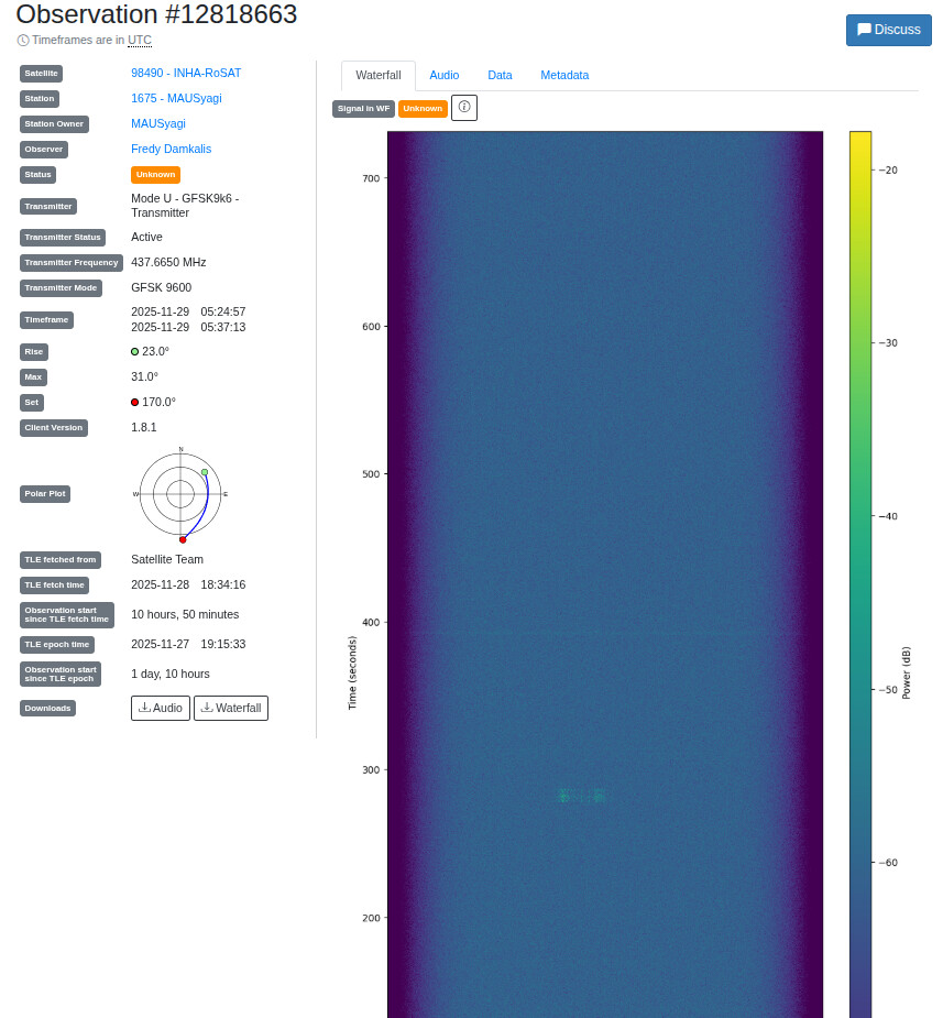 For those attempting to receive our satellite’s signal, we would like to share some additional information about INHA RoSAT.