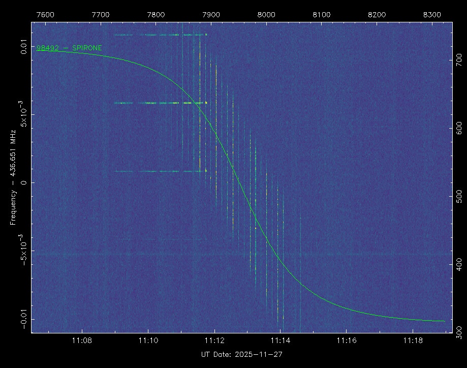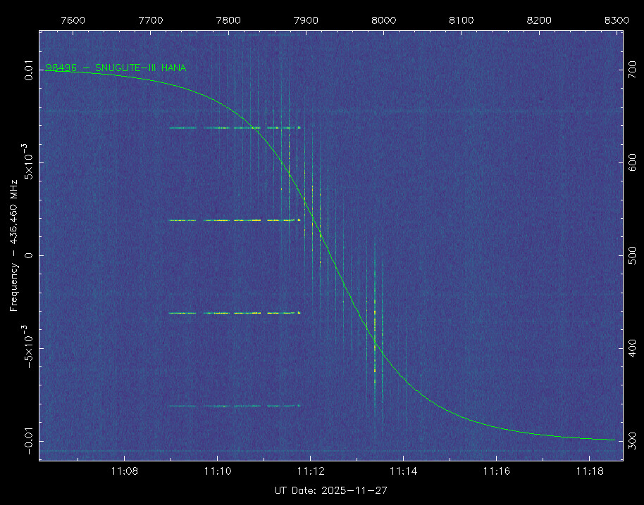 Based on the received GPS data, we reconstructed an updated TLE. We are currently observing about a 2-minute difference compared to the SatNOGS-predicted pass, and we have confirmed signal reception that matches our updated estimation.