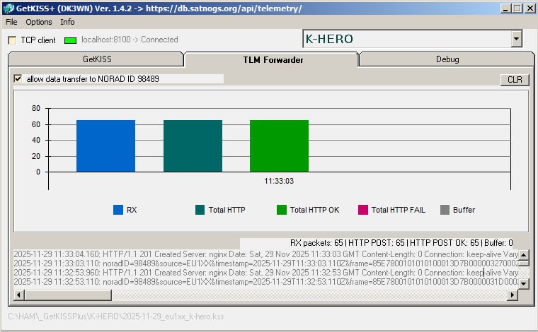 It looks like the UPDATED TLE’s altitude shows approximately 590 km, whereas based on K-HERO GPS data (included in beacon), it is approximately 588.3 km. It looks like the altitude is different from what I’ve noticed from the launcher side (~ 600 km).