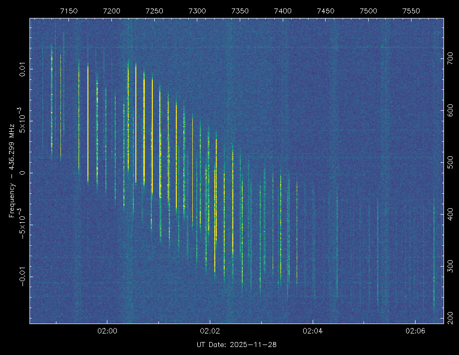 As shown in the waterfall, the Audio Beacon is visible when transmitted, and it is emitted every 5 minutes.