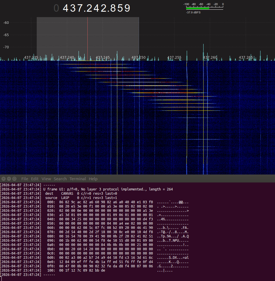 Our first local ground station pass is at 23:40 UTC today. We will keep you updated. Is it possible to decode anything like callsign from either the MAMBO listings or the ASTRA-HyRAX listings?