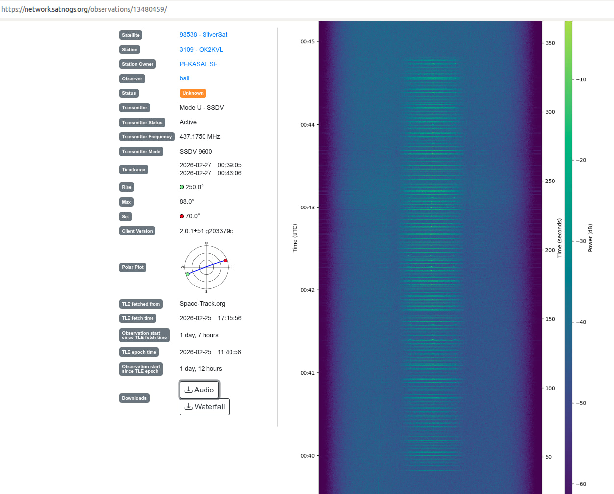 First thing I noticed was almost 5 minutes of downlink! Not only does that allow MANY repeats of each frame (in case you missed one), but people will be able to RX a signal of that duration over a long distance of ground track.