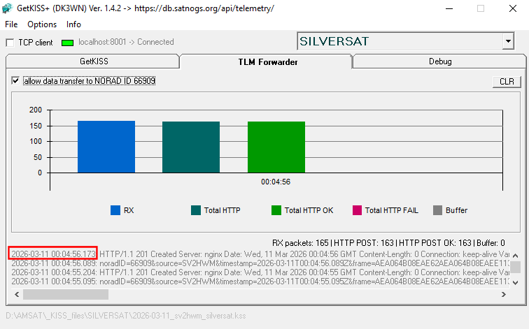Unattended rx with turnstile antenna + LNA/BPF. 163 frames uploaded to the db.