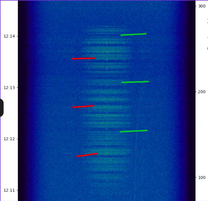 Maybe I am wrong, but from the RSSI on the tracked LHCP yagi, there seems to be a 60second periode, at least on one axis. green=minimum, red =maximum