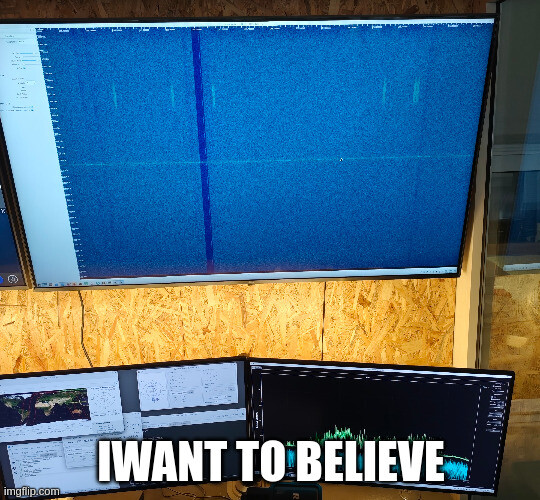 On the second morning pass, as yesterday night, we tried again to send through S-Band a command to undo the narrow filter on UHF. Yesterday we got from the telemetry that the satellites heard us but was unable to decode the signal in S-band, but on the morning pass we spotted some signals in the IQ we got that look like as answers to our command. We are in the process of analyzing the IQ and confirm or not if these were responses to the command.