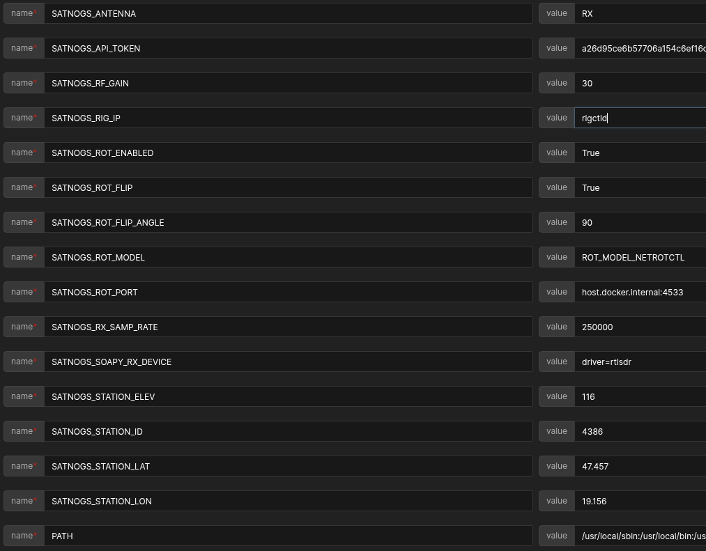 I have installed satnogs-client via docker on my RPi3 (not the satnogs OS) and I can see that a scheduled pass queries the rotator for position, but it doesn’t send a set command. I have attached my config screenshot from my docker manager. Do I need something else for the client to control my rotator?