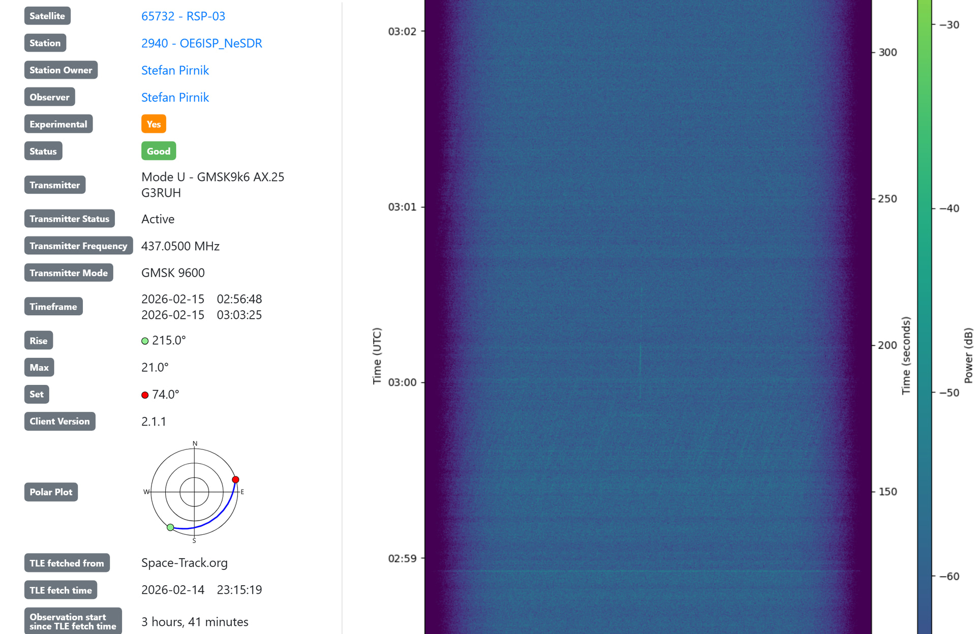 For the Europe pass at 09:24 UTC on Feb 14, we planned to start our batch program via a timer so that Dwingeloo and other European stations could observe the downlink. However, this time no signal was detected.