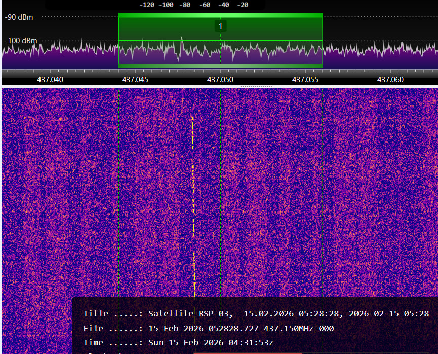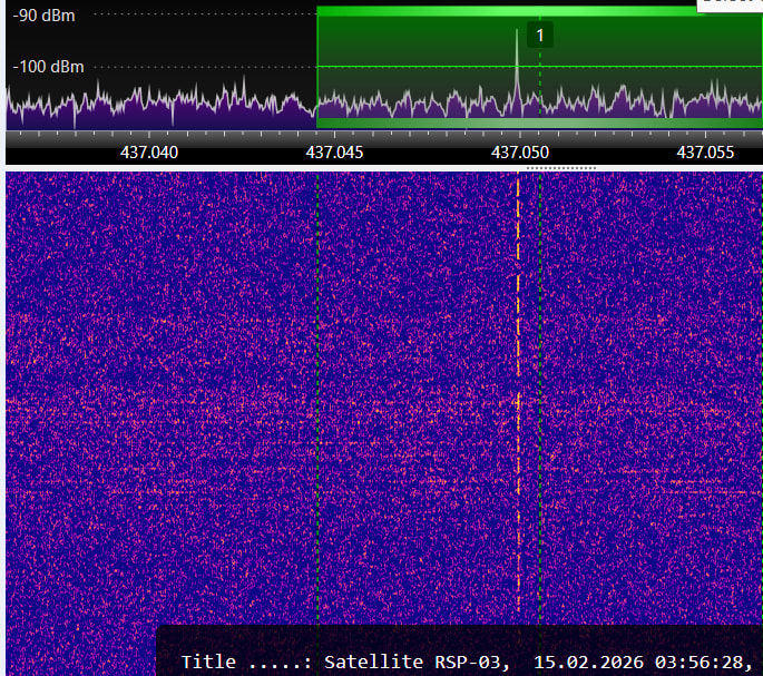 According to Dwingeloo, during the 09:24 UTC pass their telescope was able to track the TLE, and even in a 1 MHz baseband recording there was no signal anywhere near the RSP-03 frequency. Their assessment is that the satellite was most likely not transmitting during this pass.