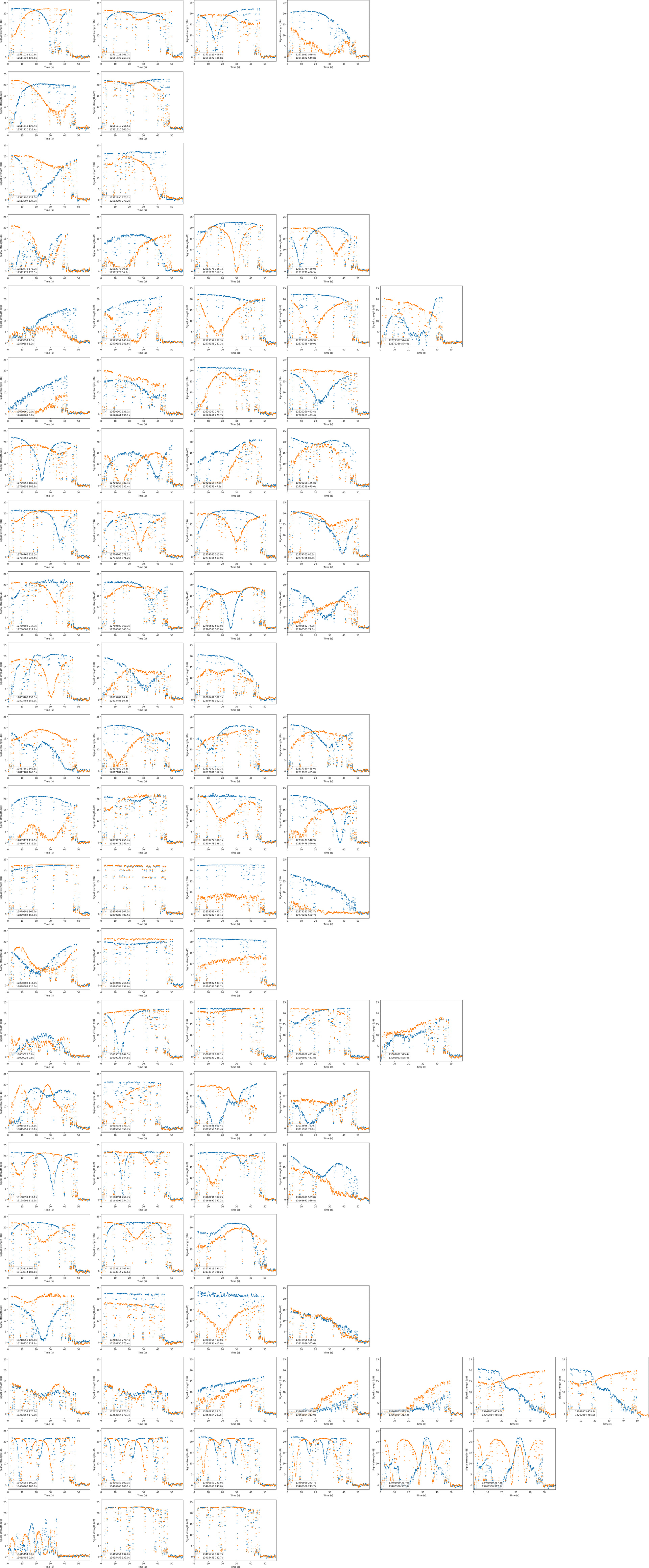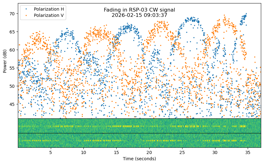 The notebook above also makes a plot of fading for all Dwingeloo observations of RSP-03. It shows that the fading of the first bit of CW (the one shown above) was nicest for the very last observation.