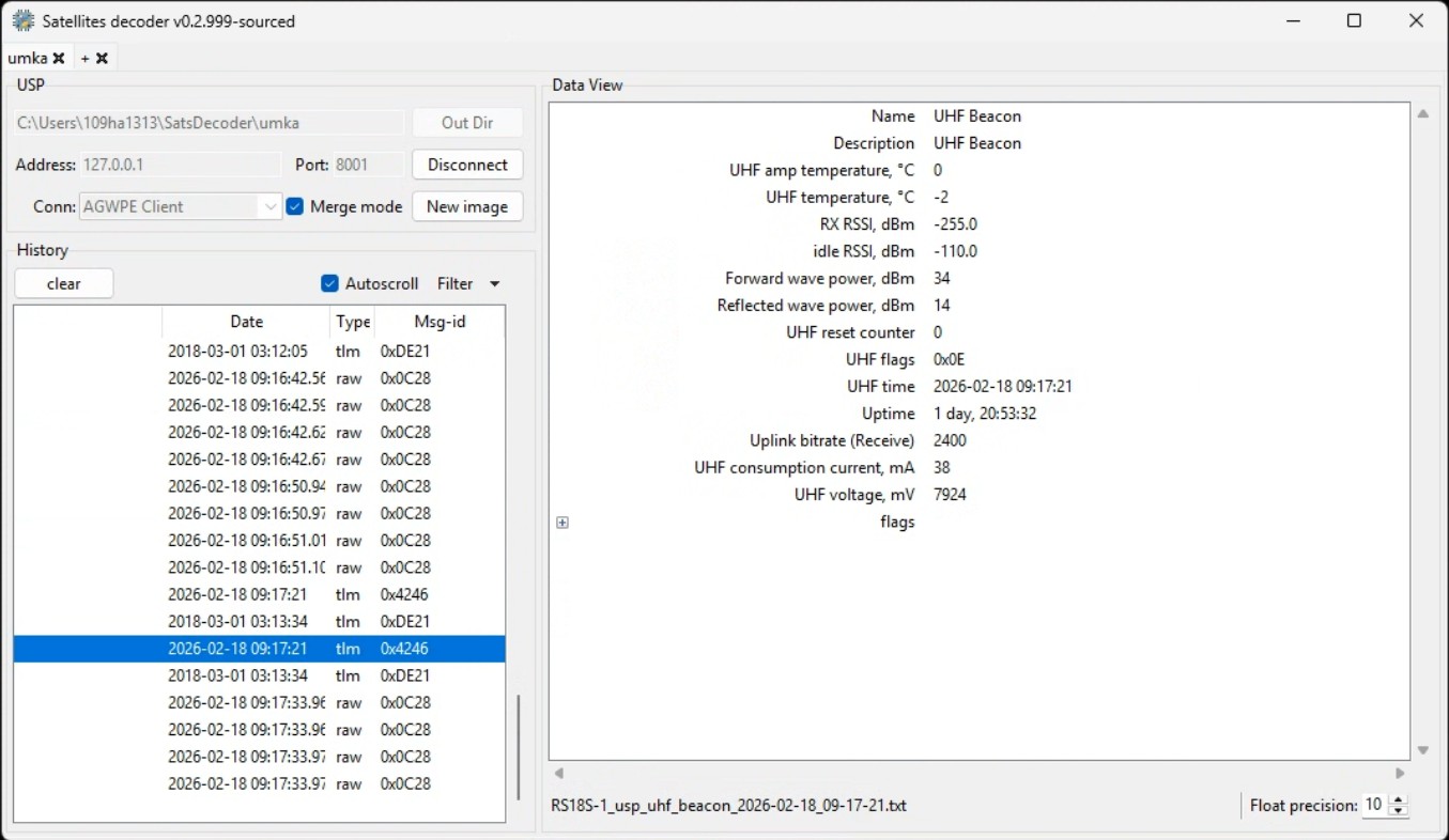 2026.02.18. Loc:JN87ng Telemetry heard.