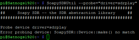 pi@Satnogs1920:~ $ SoapySDRUtil --find=“driver=sdrplay” ######################################################