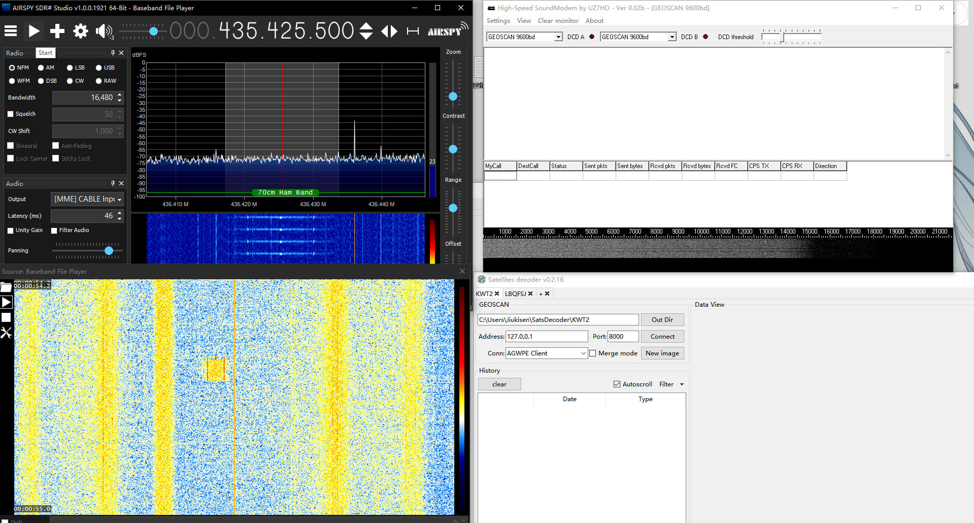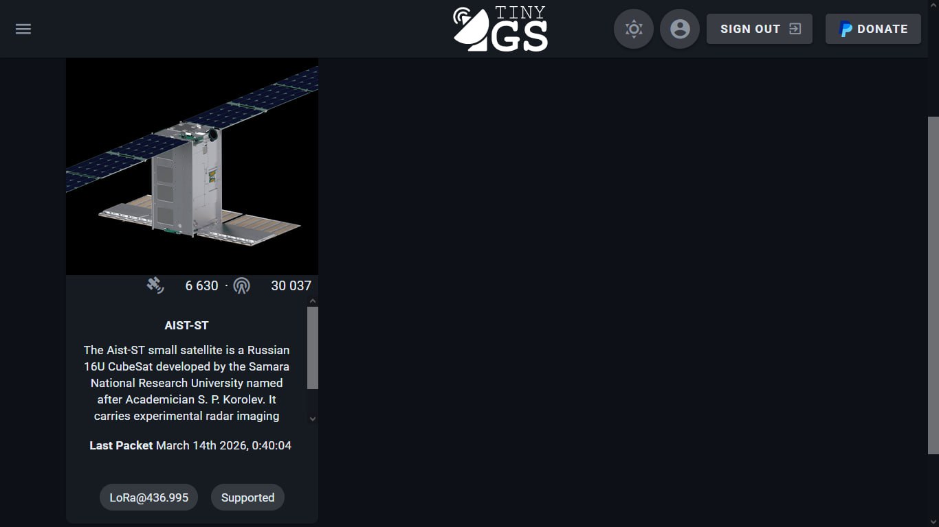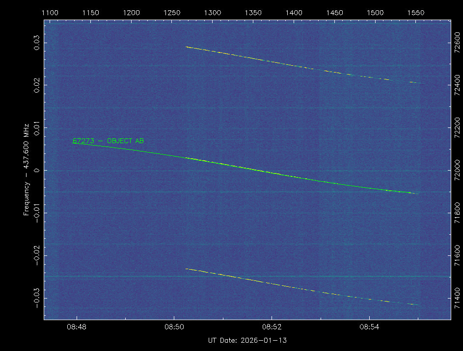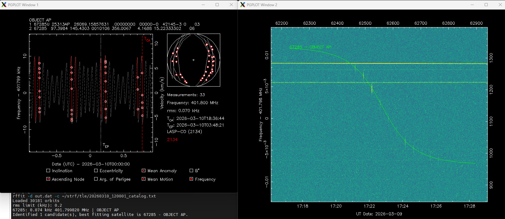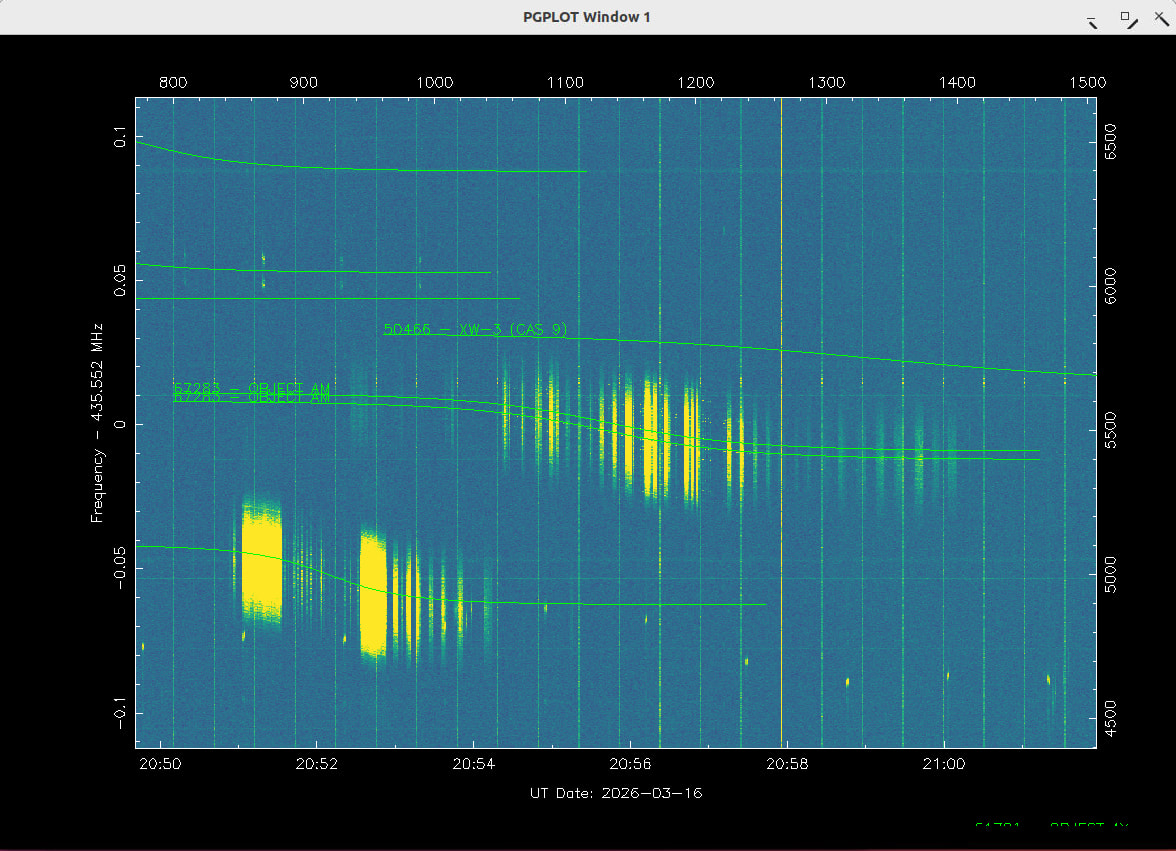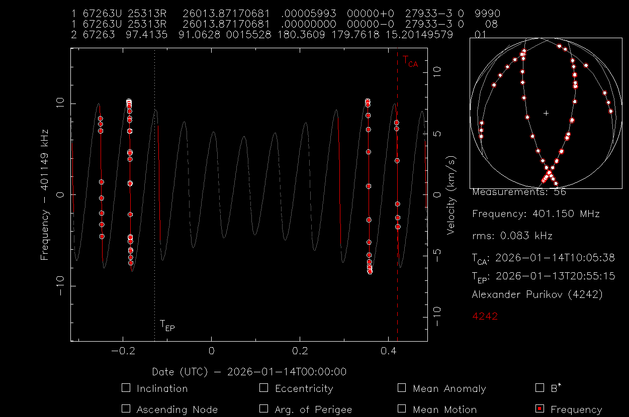 Objects 67253 and 67254 are located at an altitude of less than 400 km and all others are above 500 km. I’m sure these are AIST-2T1 and AIST-2T2. The modulation is very similar to DOKA. IMHO each of them has at least 2 frequencies. Perhaps at one of the frequencies there will be AFSK 1k2 once per minute.