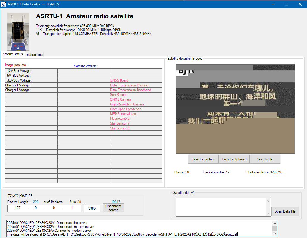 Have you downloaded the files from the link provided… in particular the the ASRTU-1_EN.rar file along with the ‘grc_modifications.png’ image showing how to add a block to GNU Radio to feed your decodes to the telemetry+image decoder on TCP-9985 (the .EXE file inside that .rar archive)?