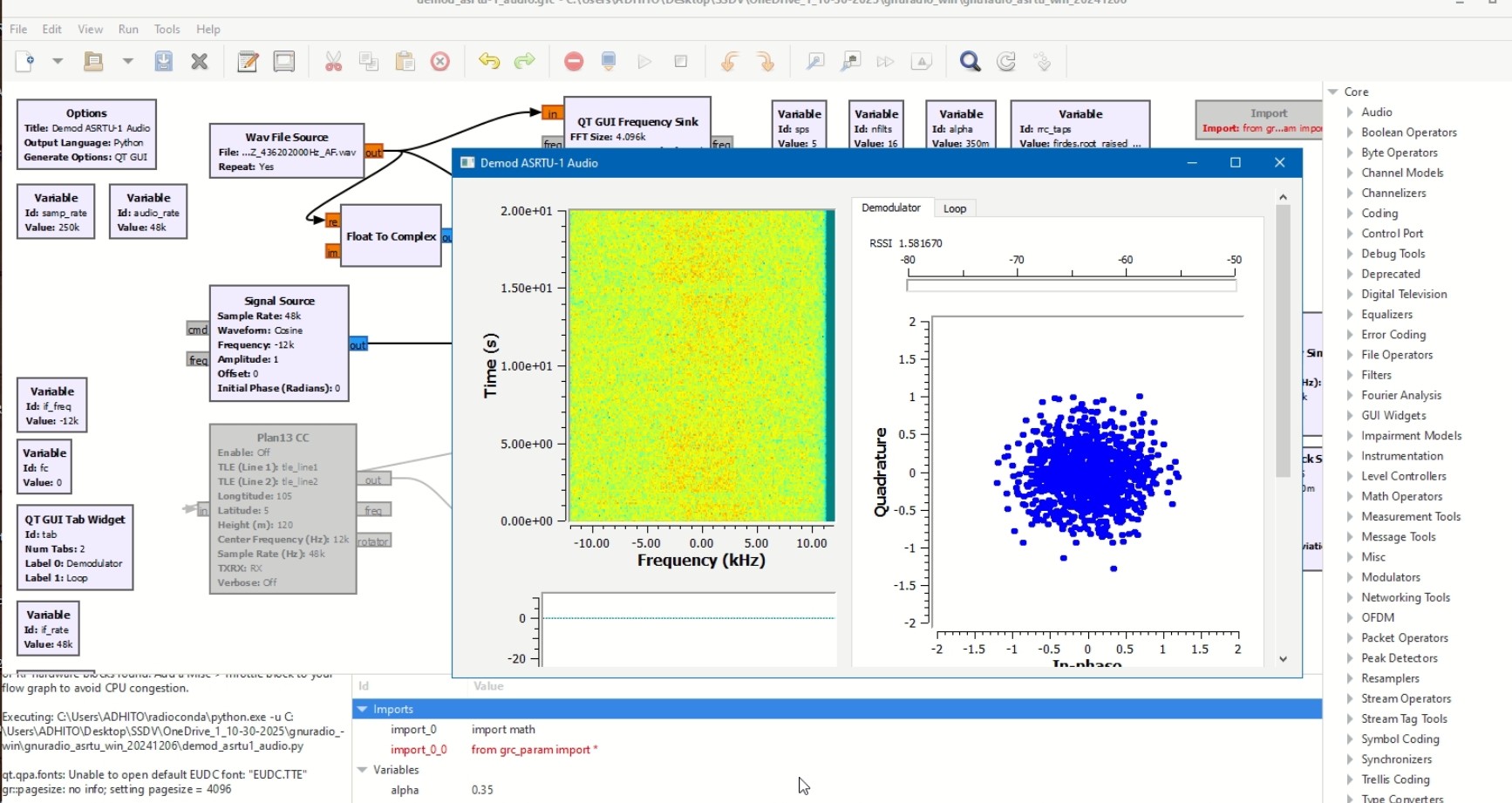 I usually get audio files from my SatNOGS station and feed that to GNU radio with no issues. Last night I tried acquiring the transmission with the newly installed radio telescope/rotator and getting what I assume a nice signals.