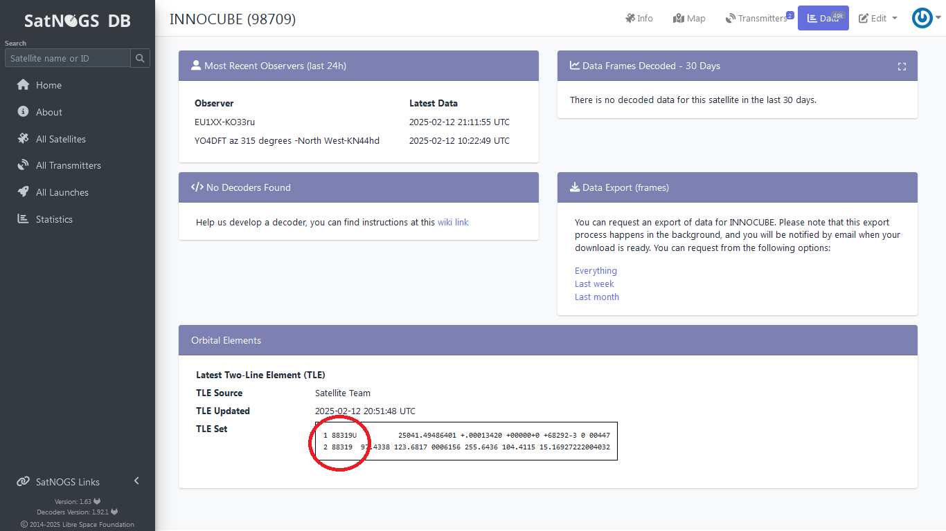 In case someone sends frames to the NORAD ID we follow, these frames will be merged later with the satellite that will be identified as this object. This may be the correct one or not depending on the results of identification.