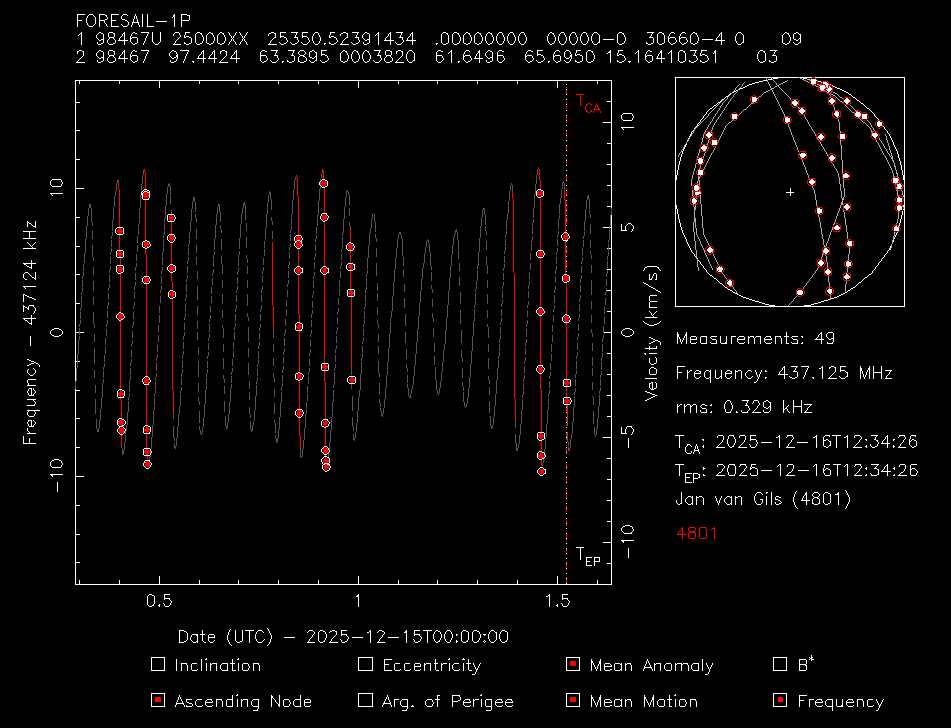 Updated TLE for Foresail-1p, still not fully accurate, we will need more observations: