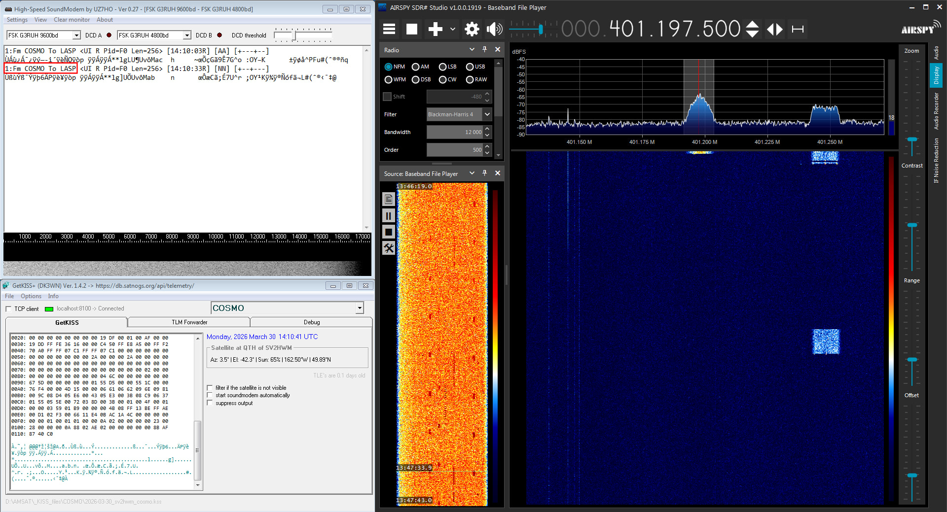 Celestrak TLE from the previous post of the satellites in DB, changed to use the tempoary NORAD ID:
