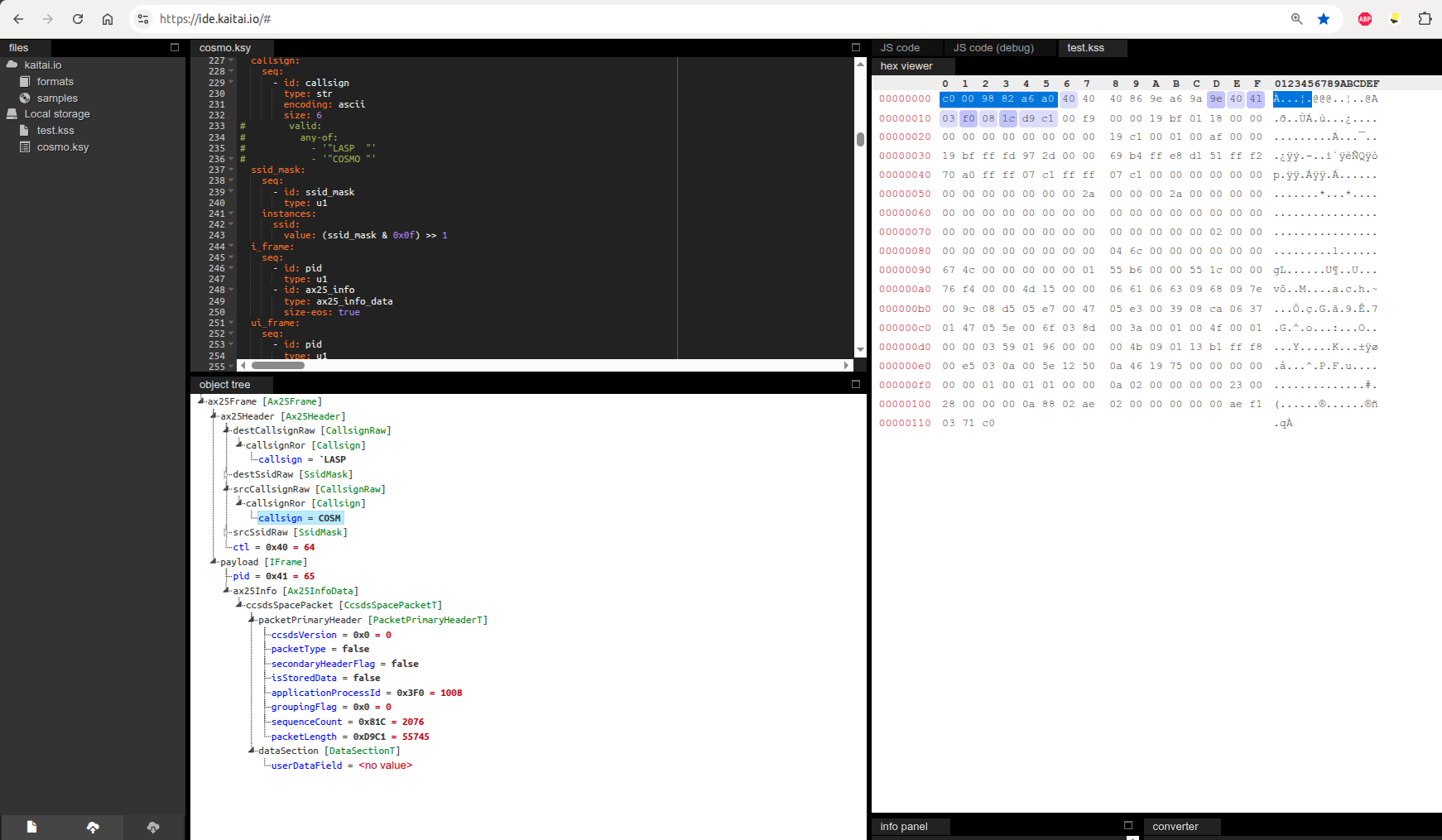 Very likely an error on my part, but FYI, I ‘borrowed’ your KSY file from that Merge Request to view a frame in the Kaitai Online Parser (ide.kaitai.io).